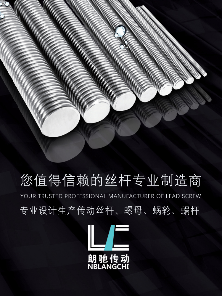 寧波朗馳傳動科技有限公司專業(yè)生產(chǎn)傳動、升降、推拉、緊固等作用的梯形螺紋絲桿和螺母。螺紋標準有:國標GB、德標DIN103、美標ACME等單頭、多頭及左右旋向的梯形螺紋。絲桿材質(zhì)有碳鋼、合金鋼、不銹鋼、銅、鋁等;螺母材質(zhì)有錫青銅、聚甲醛(POM)、碳鋼、鑄鐵、易切削鋼等。可按客戶要求定制特殊規(guī)格的絲桿螺母、M0.5-M6模數(shù)的蝸輪蝸桿。